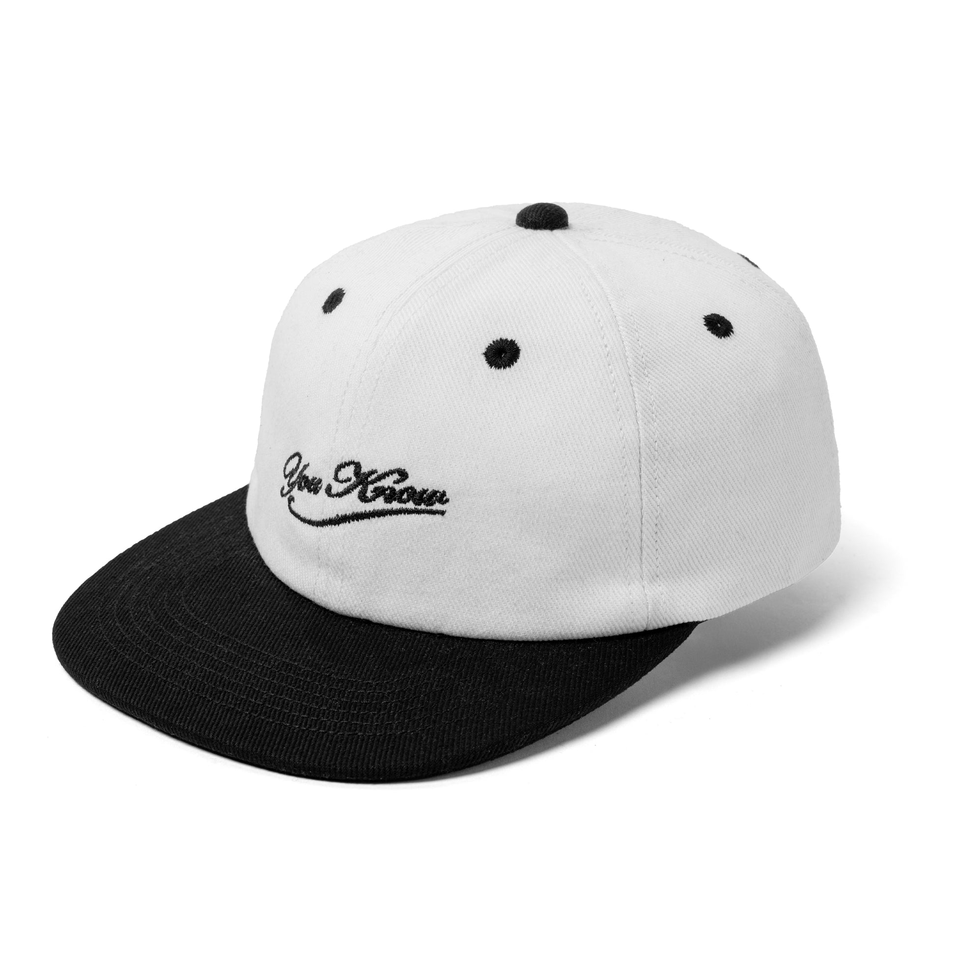 YOU KNOW… Script Canvas Baseball Cap in Black/White